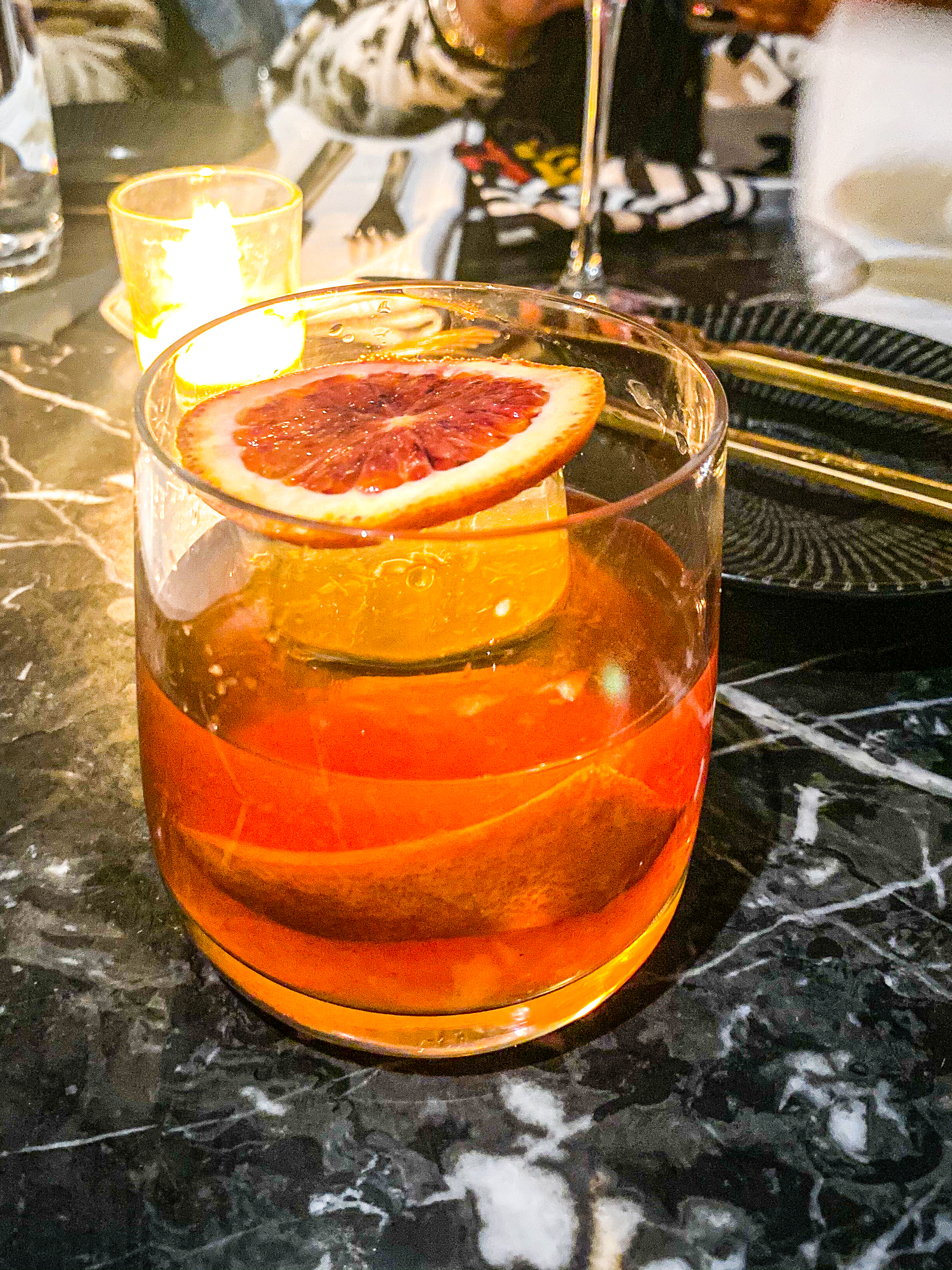 Let’s get into these drinks shall we? π₯πΈ Candace, Carmen, and I ordered the Bourbon and Blood. It is made with Bourbon, Blood Orange Liqueur, Sweet Vermouth and Orange Bitters. Our drinks were really good and Franny ordered the Lindell Martini (not pictured) and she also really liked it.