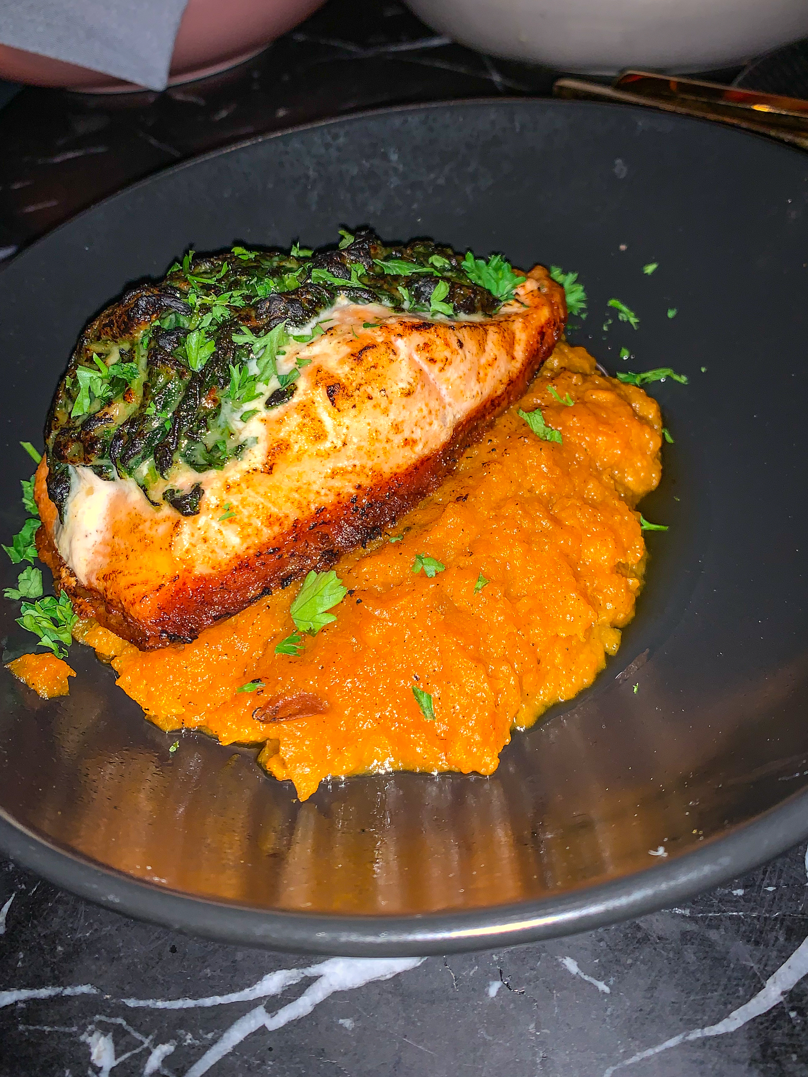 For the entrΓ©es, I ordered the Alligator Tacos, Franny and Carmen ordered the Stuffed Lobster Linguine and Candace ordered the Salmon. Ya’ll…this food though?! OMG it was SO good!