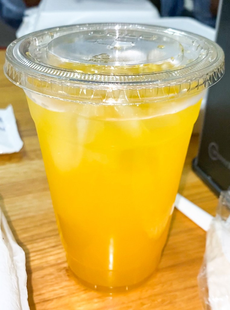 So Candace and I both got the Drip Drip platter. It comes with two snow crab clusters, two (each) pieces of corn, sausage, and potatoes and with 10 pieces of grilled shrimp. You can get it in original, cajun or lemon pepper but you’re also able to mix and match the flavors too. We both got the cajun and lemon pepper mix and when I tell you this food was bomb!? π©π€€ππ½ We tore these crab legs π£UP! lol Everything was seasoned well and it was cooked perfectly. I also got a peach mango to drink which was also very tasty.