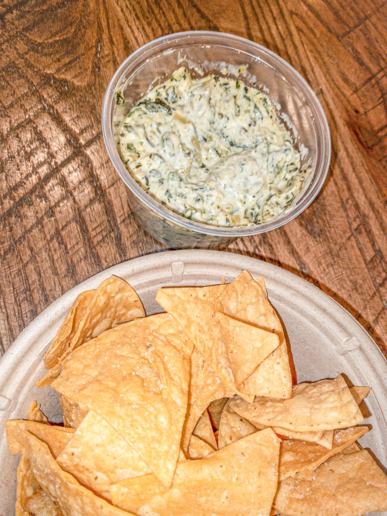 Carmen didn’t steer us wrong because ya’ll…this food was bomb! π©ππ½ So to start, Candace ordered their Spinach Artichoke dip and she loved it. I tasted some and it was so full of flavor and it was the perfect consistency. She appreciated the container that it was served in too. All you have to do is add a lid and it’s good to go. For her eΓ©ntre, she chose the chef special which was a grilled chicken sandwich made up of caramelized onion, aioli, arugula, and cheese. She also really enjoyed her side which was the Bacon Fat Fries. They are topped with parmesan, shallot aioli, and herbs.