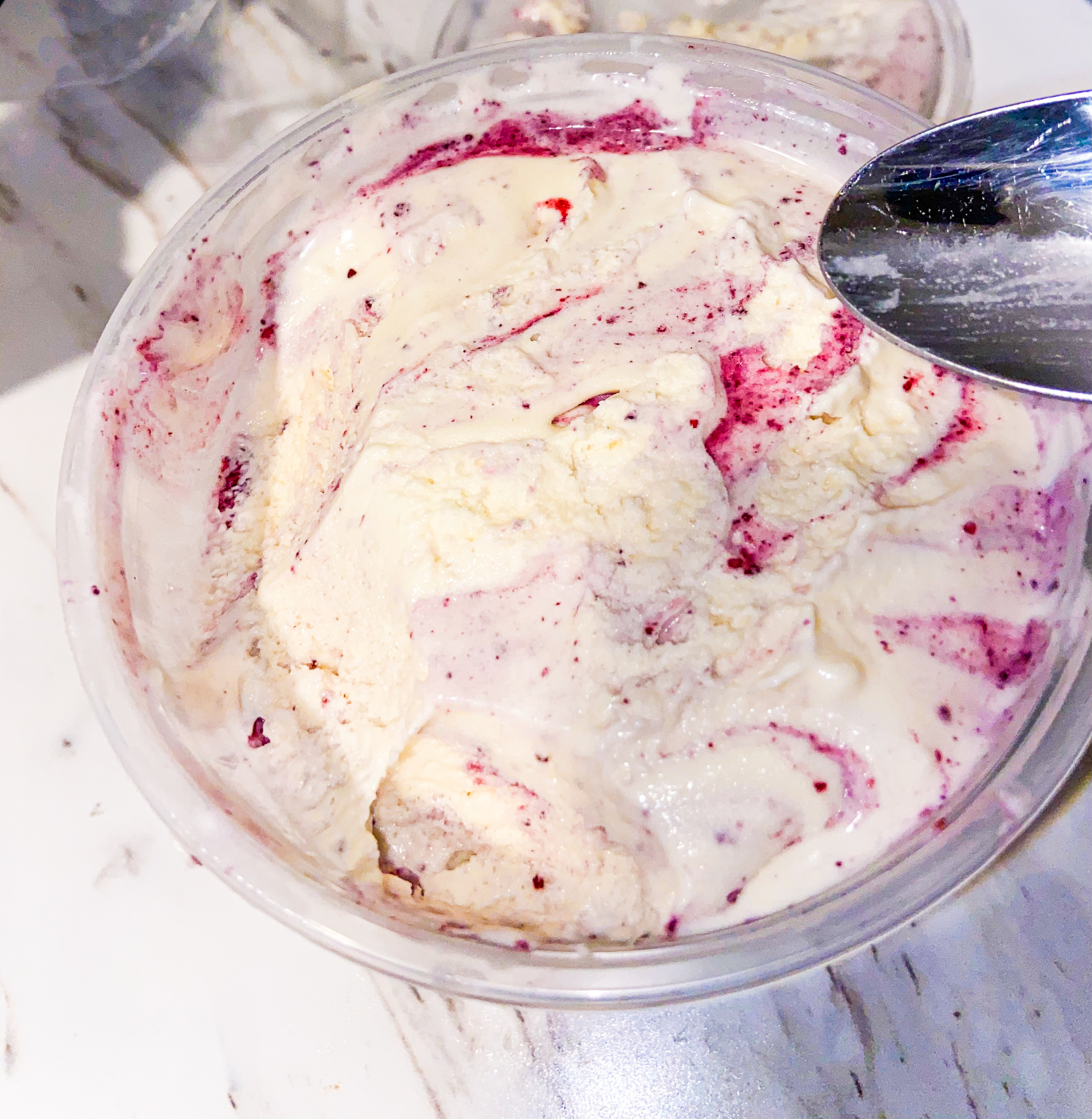 For dessert, Candace also ordered the Louberry. It is Gooey Butter ice cream swirled with strawberries and blueberries and she said it was absolutely delicious.