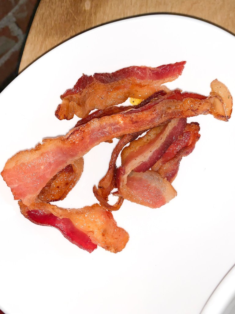 Candace’s entrée was the Steak Hash and she also got a side of bacon. The Steak Hash comes with roasted potatoes mixed with onions and peppers and it’s topped with cheddar cheese. You can get the 6 oz sirloin cooked anyway that you would like and it also comes with two eggs which she didn’t get due to not liking them.