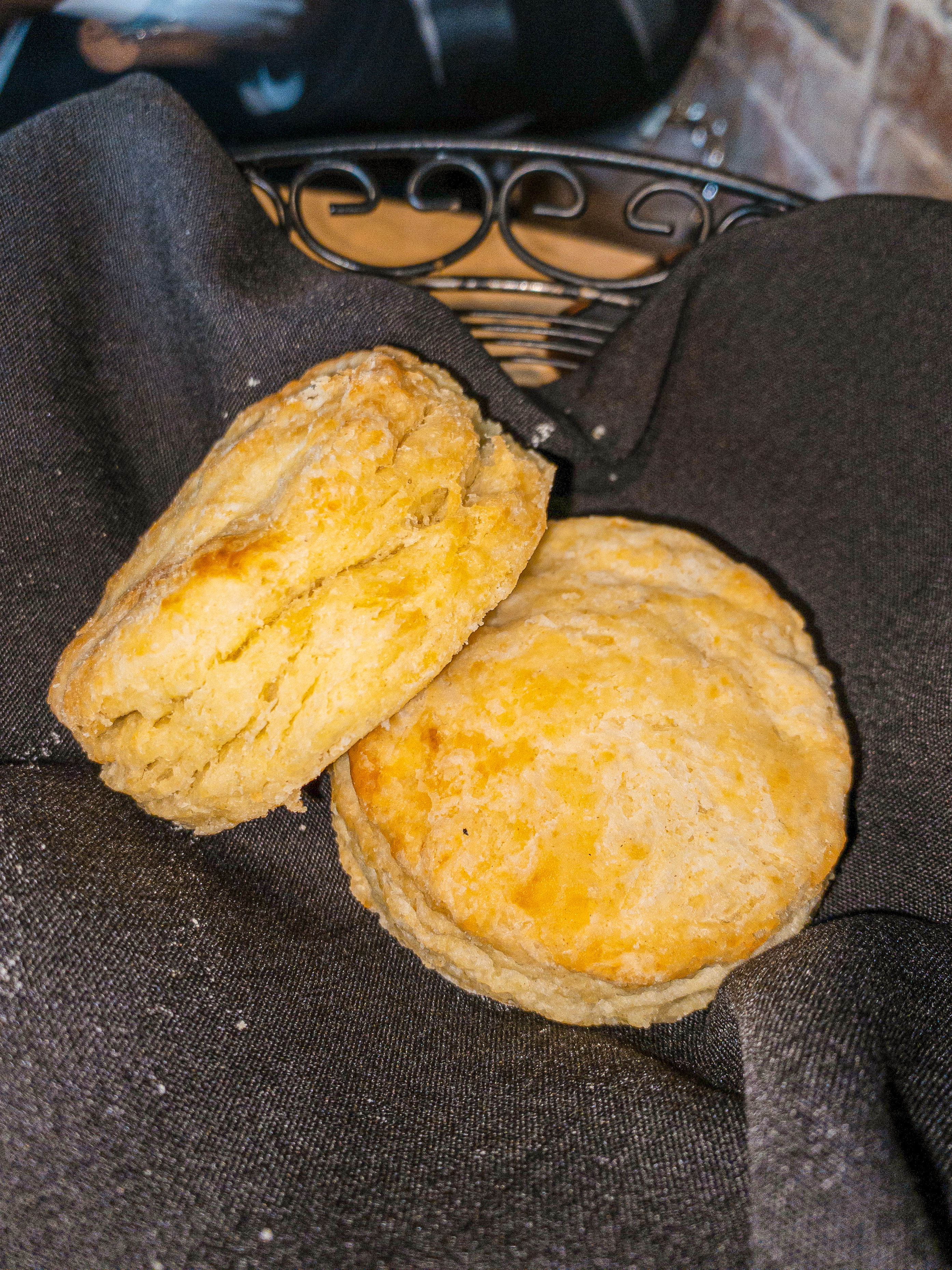 Candace also ordered the Butter Biscuit Basket and it came with three signature house butters. She said that the biscuits were absolutely delicious and the butters were (from L-R) Cinnamon Brown Sugar, Blueberry Lemon and Maple Bacon.