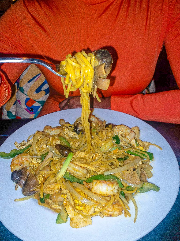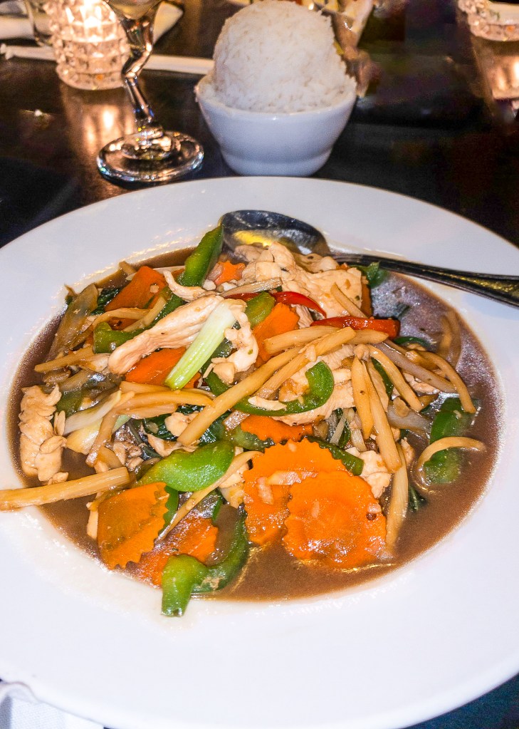 Carmen (pictured) also got the Singapore Noodle with chicken but she also added shrimp and mushrooms. Both dishes were very filling and just bursting with flavor and the best part was that I had plenty for leftovers.