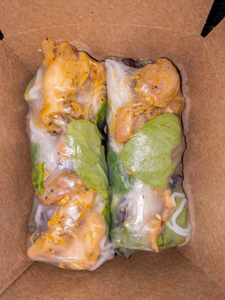 The Lemongrass Chicken Spring Rolls were also super delicious. Besides chicken, the spring rolls are also filled with rice noodle, mixed greens, mint and it’s rolled in rice paper. You also get this really tasty peanut sauce to dip them in. If you thought I had any left over to take home, then you would be wrong. lol These spring rolls were everything!
