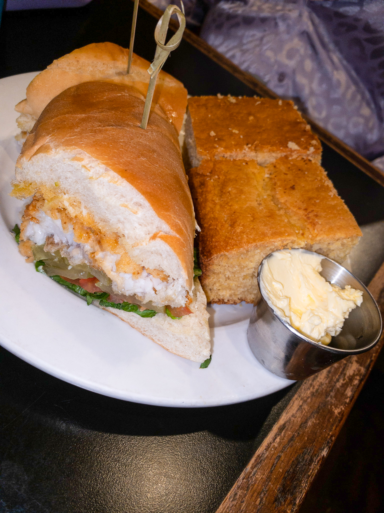 For an entrΓ©e, I got the House Smoked Jerk Chicken Sandwich ($12.50) and Sharee got the Fried Catfish Po’Boy ($9.95). That jerk chicken was seasoned and smoked to perfection and the sandwich also comes with pepper jack cheese and a remoulade sauce. The bun was perfectly toasted and the roasted plantains were also really good too. Sharee also loved her meal as well and even had to talk half of it home due to being so full. I on the other hand left nothing but crumbs on my plate and I am not ashamed. lol