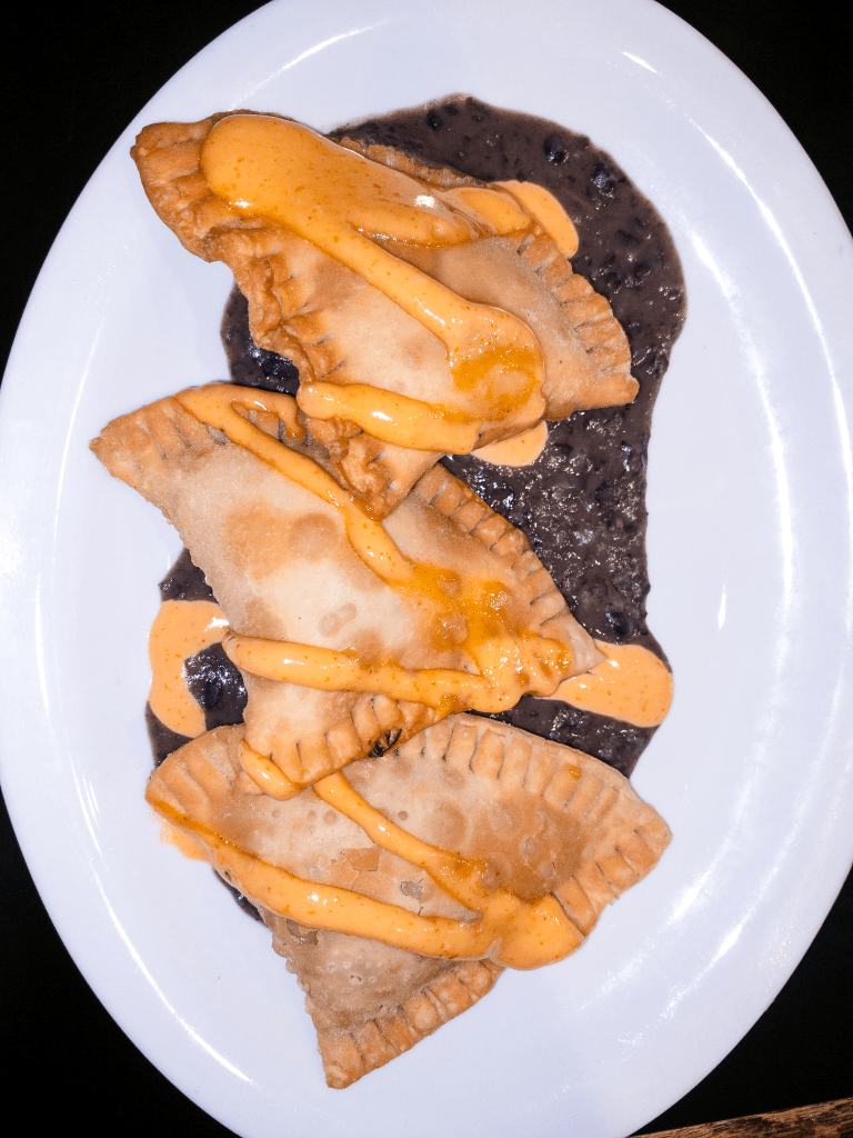 When I tell you that these Crab Empanadas were amazing?! OMG! They were so buttery and flaky on the outside but the inside was filled with delicious crab meat that was just full of flavor. The Crab Empanadas are also plated on top of this black bean puree and drizzled in this volcano sauce which was also really tasty. If you’re also a lover of empanadas, then you have to give these a try because they are