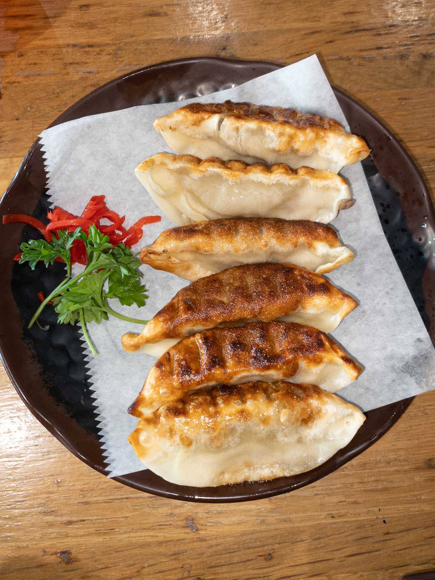 We started off with drinks and appetizers and we both got the Rancho La Gloria Strawberry Margarita and an order of their pork gyozas. The margarita was really good and the gyozas were absolutely delicious! If you don’t like or eat pork, you can also get the gyoza’s in chicken or veggie.