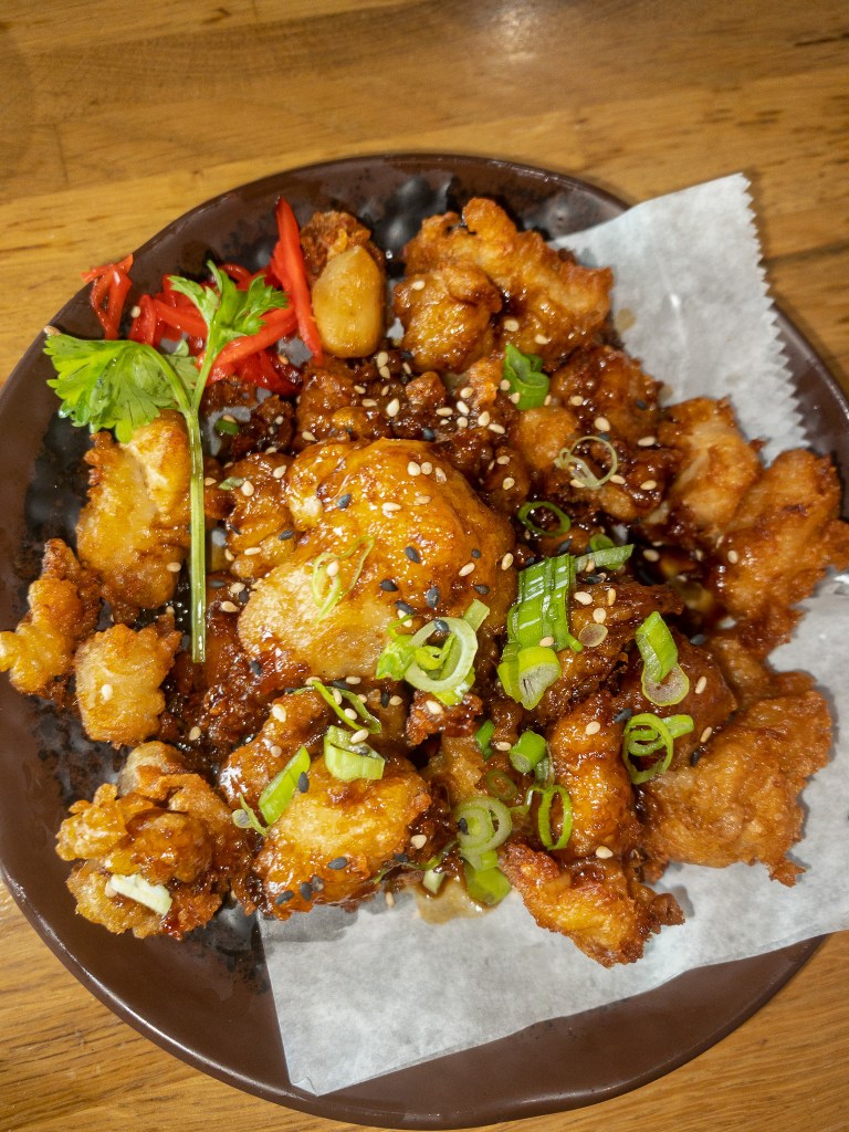 For my entrée, I got their Kara-Age Chicken and the Fried California Roll. The Kara-Age chicken is popcorn chicken that is sautéed with katsu sauce and it was so good! The Fried California roll is made with crab salad, avocado, eel sauce, and cream cheese and then it’s deep fried. It was super delicious and I would definitely order it again.