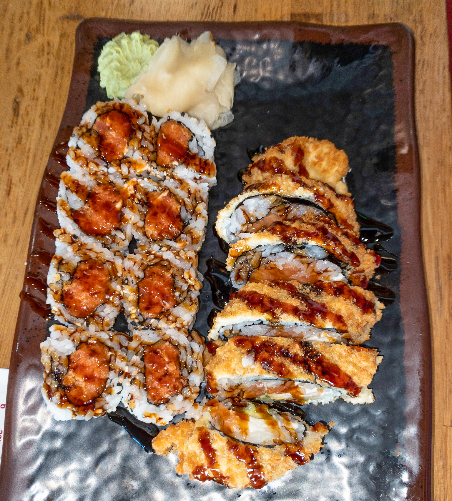 For her entrée, Sharee ordered the Fried Philly Roll and the Crunchy Spicy Tuna Roll. The Fried Philly Roll is made with salmon, cream cheese, eel sauce, avocado and then it’s deep fried. The Crunchy Spicy Tuna Roll is made with marinated red tuna, house made spicy mayo, eel sauce, and crunch. She also thought her food was delicious and she absolutely loved her meal as well .